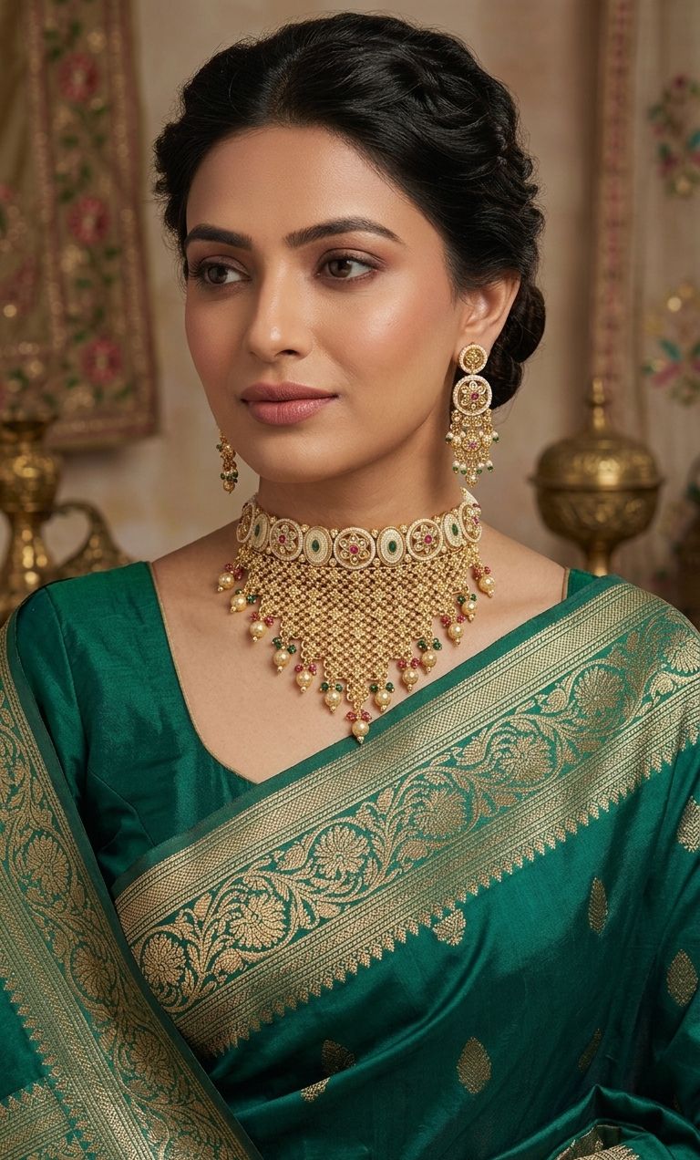 A regal choker set inspired by royal Rajwada charm and timeless elegance.